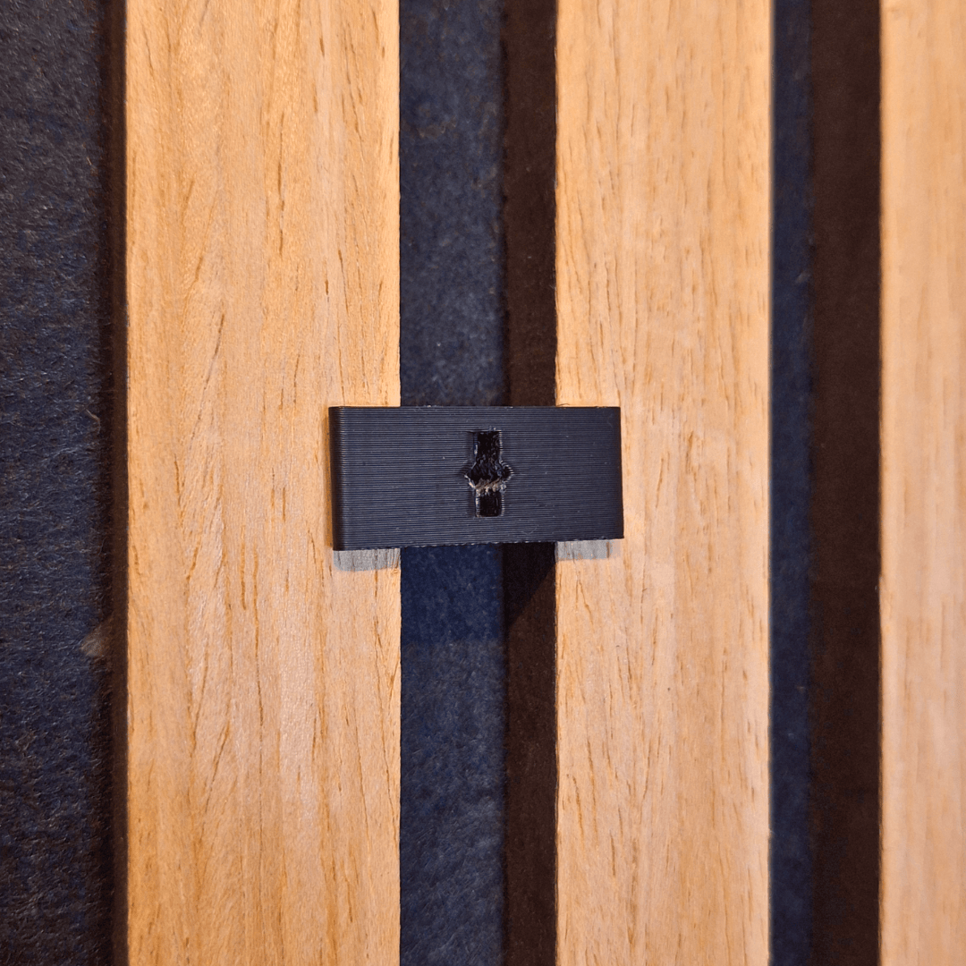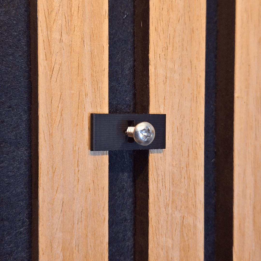 » Hinweis: Der Filz MUSS an die Lamellen GETACKERT sein. Falls die Lamellen an das Filz geklebt sind, kannst du den Halter leider nicht befestigen.